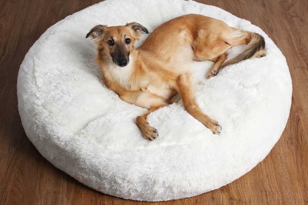 Es ist der perfekte Schlafplatz für Hunde zum Dösen und Träumen: Eine große Wolke in Donut-Form, kuschelig weich und dick mit Memory-Foam gepolstert und einem breiten Rand. Das Hundebett „Flocke“ gilt als wahrer Geheimtipp, besonders unter Windhund-Freunden.